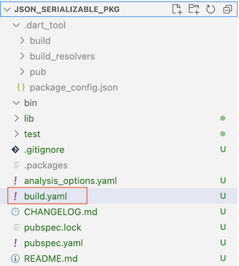 First, add a build.yaml file to your project. This configuration file instructs build_runner on how to generate new source files from the specified ones.