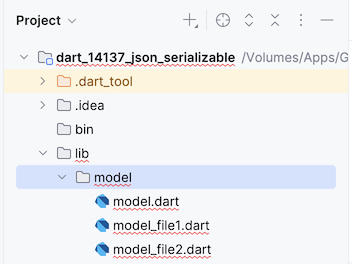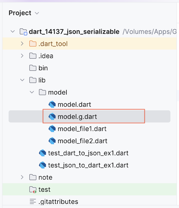 /Volumes/Apps/Apps/dart-sdk/bin/dart run build_runner buildAfter successfully running the command, the tool will generate the file "model.g.dart":