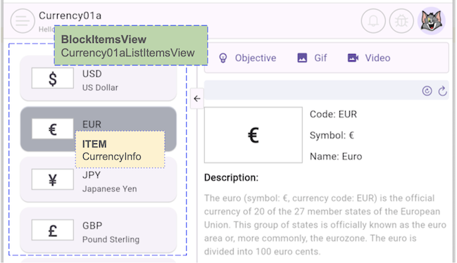 Currency01aItemDetailView is a class that extends BlockItemDetailView, designed to display the ITEM_DETAIL (CurrencyData) on the user interface.