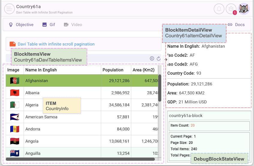 }Below is the complete implementation of Country61aDaviTableItemsView, demonstrating how to build an infinite scrolling data table by combining Davi, FaDaviTable, and the FlutterArtist pagination mechanism.